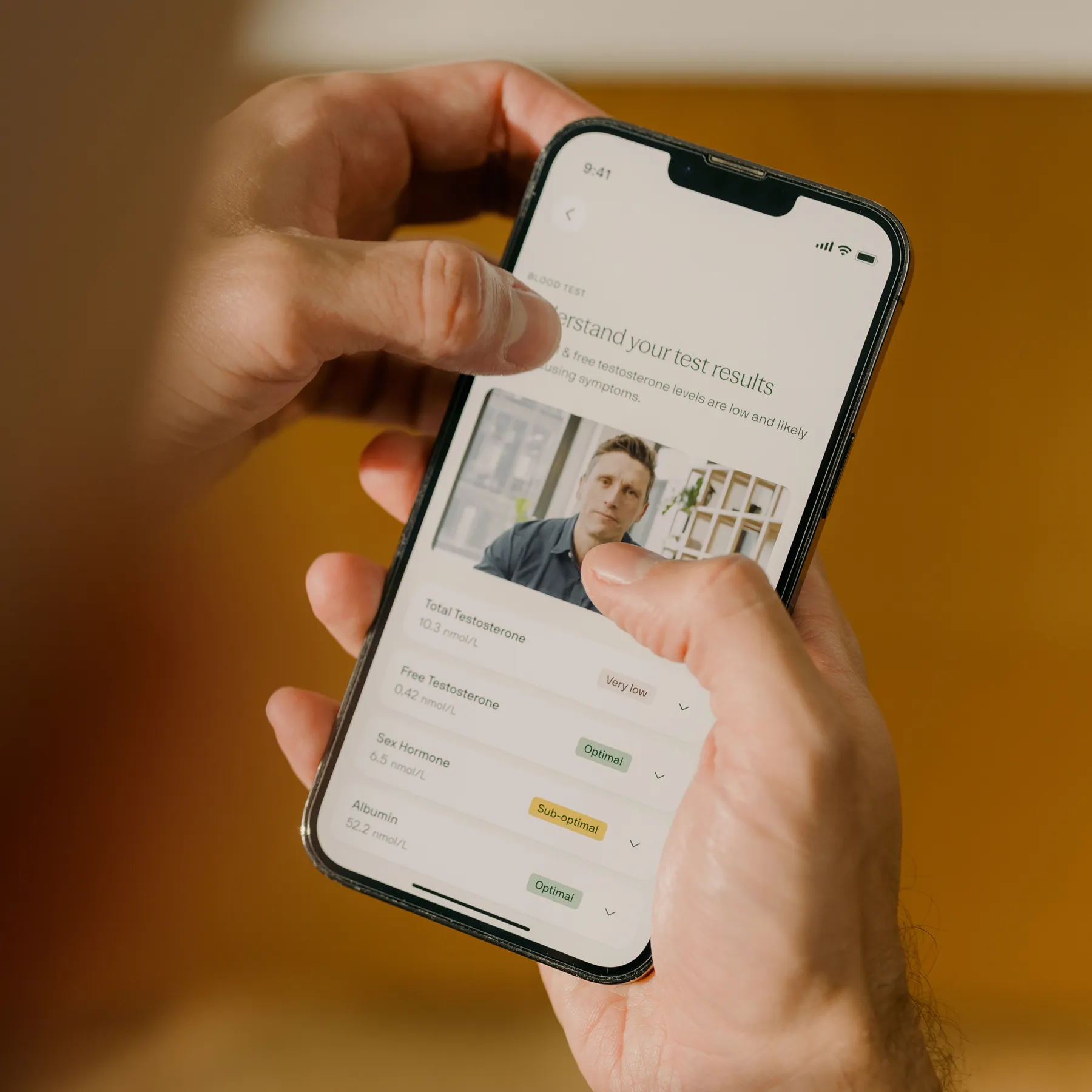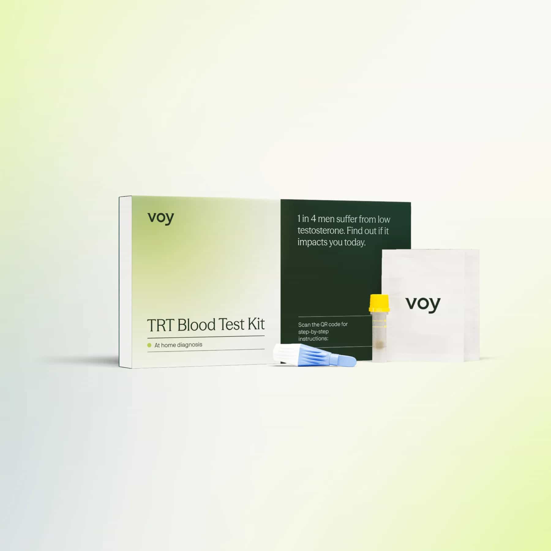 Our initial at-home, finger-prick blood test measures 4 biomarkers including your total and free testosterone levels. You can access your results via your VOY account.
